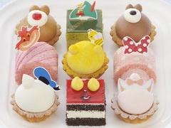 ミッキー、ミニー、ドナルド、くまのプーさん、チップ、デール、マリー、チェシャ猫、ピーター・パンをそれぞれ表現したタルトやケーキが目にも楽しい。価格は2160円(税込)。