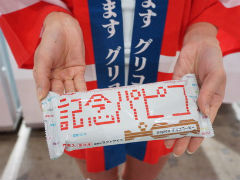 ブース内では記念に「記念パピコ」ハンコも押せます