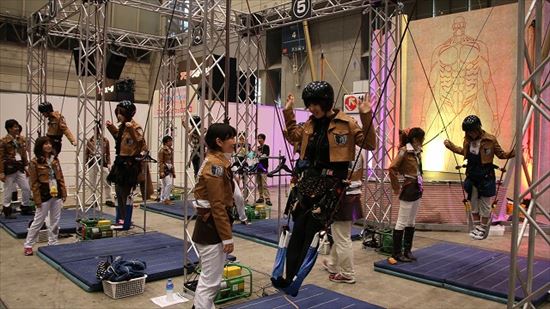 ニコニコ超会議3:待ち時間100分! 調査兵団入団志望者が「進撃の巨人」ブースに殺到! さあ立体機動装置で飛べ!