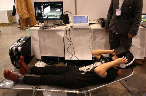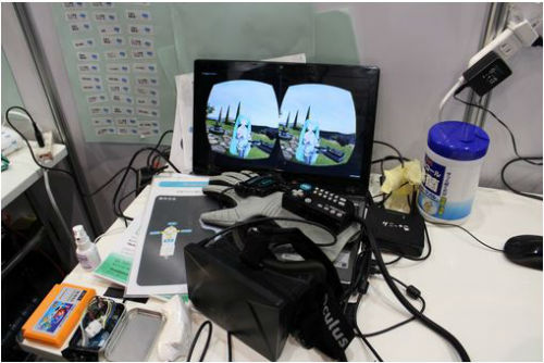 超会議ではあちこちで、VR(バーチャルリアリティ)ヘッドセット「Oculus Rift」で仮想現実の世界を体験できました。