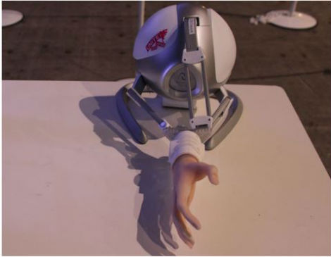 ねとらぼでも何回か紹介した初音ミクと握手ができる「Miku Miku Akushu」。この改良版が、「超ボーカロイド感謝祭」の超ボカロキャラ握手会に降臨していた。3次元感触インタフェース「Novint Falcon」を使って、次元の向こう側にいるミクさんと接触できる。とにかくミクさんがひたすらかわいくて困る。