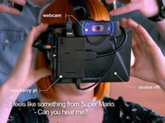 実験に使ったのは、人気のメガネ型ディスプレイ「Oculus Rift」です。これにWebカメラやミニコンピュータ「Raspberry Pi」を連携させて、装着者の視界が3秒遅れでディスプレイに表示されるようにします。