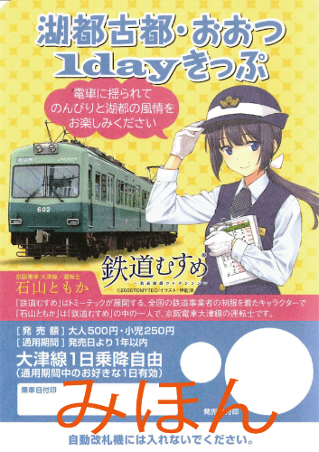 5月16日からは石山ともかの等身大パネルを大津線4駅(京阪山科駅、石山寺駅、近江神宮前駅、坂本駅)に設置する。また2015年3月31日までの期間限定で、大津線全線が1日乗り放題の乗車券「湖都古都おおつ・1dayきっぷ」(500円)の石山ともかバージョンを販売している。
