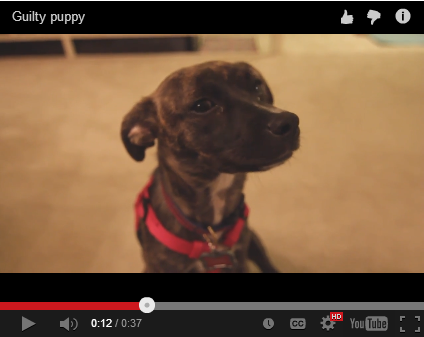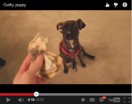 いたずらがバレてしまい、お説教される子犬の動画がYouTubeに投稿されています。なんとも愉快でかわいらしいリアクションです。