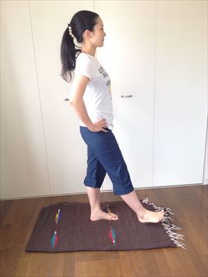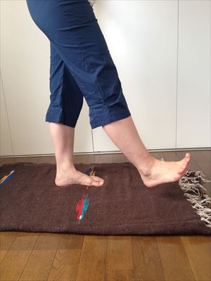 2. 片足に体重を乗せ、体重が乗っていない方の足を斜め前に上げます