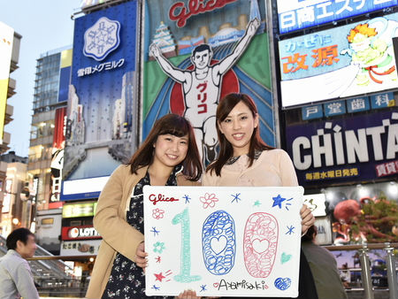 現在の看板は1998年7月に設置され、「大阪市指定景観形成物」に指定されている。最終点灯日の100日前の5月10日から、「さよなら5代目」企画としてカウントダウンを実施。道頓堀でグリコ看板を見ている人にボードを持ってもらい、TwitterやFacebookなどで残り日数を知らせる。6代目の完成は今年秋ごろの予定。