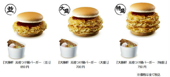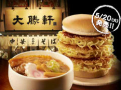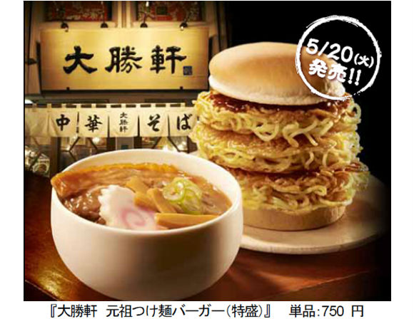 ロッテリアは5月20日、つけ麺で有名な「東池袋 大勝軒」の監修による「大勝軒 元祖つけ麺バーガー」を発売する。6月中旬までの期間限定販売。