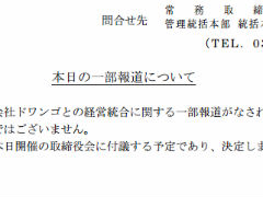 経営統合について「当社として発表したものではございません」としつつも、「本日開催の取締役会に付議する予定であり、決定しましたら速やかに開示いたします」と統合に向けた動きが進んでいることを明らかにしている。