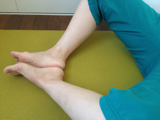 1. 仰向けになり、両足の裏を合わせます。