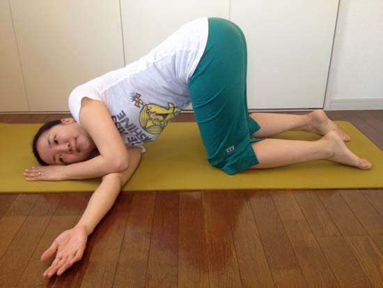 体がなるべく全部床につくようにするとリラックス効果が高まります。
