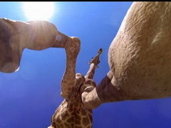 地面にGoProを置いて近づいてくる野生のキリンを撮影したのですが、偶然GoProをキリンが蹴ってしまったおかげでレンズの向きが変わり、真下から捉える奇跡的なショットを拝めることに。キリンってでかいなぁー!