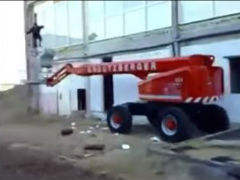 高所作業車のリフトに人を乗せたまま段差を降りる→人がスポーンと吹っ飛ぶ
