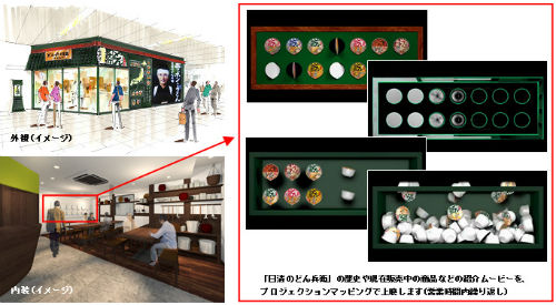 日清食品のアンテナショップ「どん兵衛屋 渋谷駅ナカ店」(東京・渋谷)が6月9日に、プロジェクションマッピングを取り入れリニューアルオープンする。