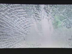 鑑賞中に突然、観客の携帯電話から着信音が一斉に鳴り響きます。スタッフが特殊な装置を使って場内の携帯に信号を送ったためです。観客は次々と携帯を取り出します……すると大きな音が鳴り響き、映像の車が木に激突! 割れたフロントガラスをお客さんがぼうぜんと見つめていると、「運転中の携帯電話使用は交通事故死の大きな原因となっています」「道路から目を離さないでください」のメッセージが表示されます。