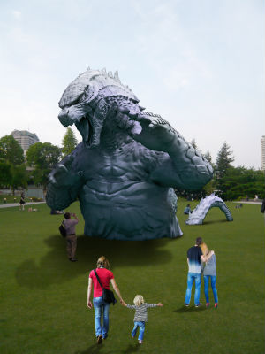 東京ミッドタウンにゴジラ! 7分の1サイズのオブジェが出現