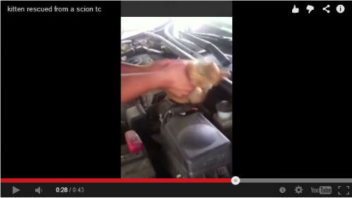 助かってよかった…… 車のエンジンルームに入り込んだネコが救出される動画