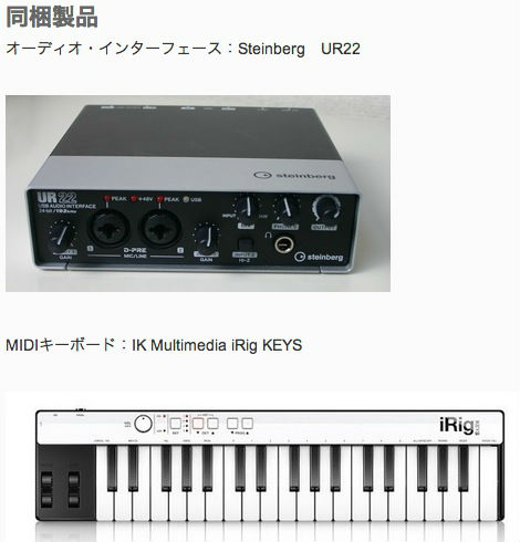 ヤマハのボーカロイドライブラリ「VY1 V3 NEO」とDAW「Steinbetg CUBASE7.5」などのソフトウェアを同梱。MIDIキーボード「IK Multimedia iRig KEYS」やコンパクトなオーディオインタフェース「Steinberg UR22」などを含めた本格的な楽曲制作が行えるセットとなっており、これから本格的な環境をそろえようと思っている人にとっては朗報かもしれませんね。