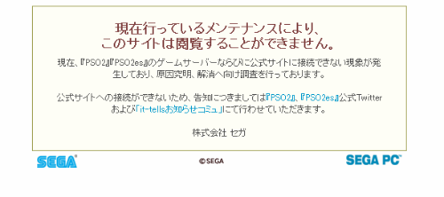 DDoS攻撃がPSO2公式サイトにも開始されたため、公式サイトも一時停止に。停止中は公式Twitter公式ブログで告知を行っていくとしています。