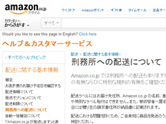 Amazon.co.jpのヘルプページにある「刑務所への配送について」というトピックが注目を集めています。