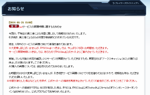 攻撃は6月19日から行われており、現在も断続的に行われている状況。PSO2については6月注の再開を目指すが、スマートフォン版「PSO2es」はまだ対応に時間がかかるという。
