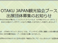 2015年3月28日、29日に幕張メッセにて開催される「コミケットスペシャル6〜OTAKUサミット2015〜」は「OTAKU JAPAN観光協会ブース」に出展する団体の募集を開始した。