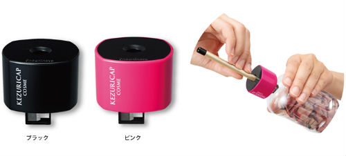 ペットボトルを削りくず入れにする鉛筆削り「ケズリキャップ」に化粧用ペンシルバージョン