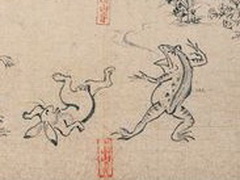 カエルがウサギを投げ飛ばす絵巻物「鳥獣人物戯画」 修理を記念した展覧会が京都で開催