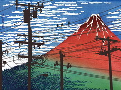 葛飾北斎の赤富士にもしも電柱が映り込んだら 「無電柱化民間プロジェクト」のビジュアルが話題