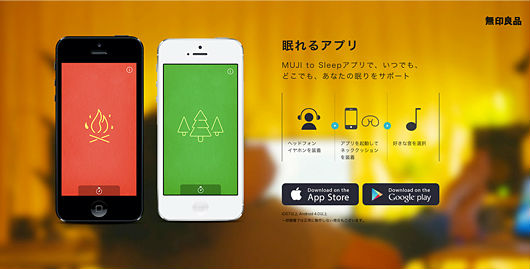 「MUJI to Sleep」(無料)は、「眠る」をテーマに日本各地で録音した6つの自然の音を立体音響で流すというもの。iOS、Androidに対応する。
