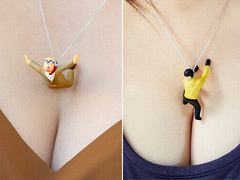 「タニマダイバー」は胸の谷間に飛び込むポーズをとった人間のフィギュア。ネックレスにペンダントトップとして装着し、胸元に垂らすことで、実際に谷間へダイブしているようなデザインになっている。