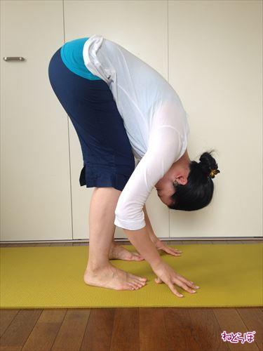 3. 息を吐きながら、前に飛び込む勢いで前屈をします。