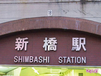 JR新橋駅で下車し、日比谷口を出てSL広場方面に出て、交差点を渡り、カラオケ屋の間にある路地へ