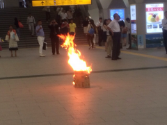 JR京浜東北線の浦和駅(埼玉県さいたま市)で7月29日、何者かが放置した段ボールが燃える事件が起きた。