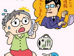 2012年度以降2014年6月末までに寄せられた相談件数は1347件で、2013年度から急増しているんだとか。詐欺にあうのは8割強が60歳以上で女性が8割を超えている。詐欺だと気付かず、お金をだまし取られた場合もあるそうだ。