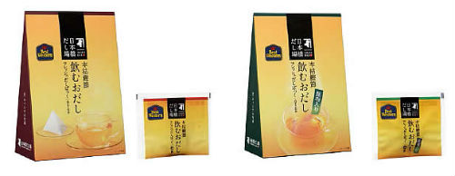 「本枯鰹節飲むおだし」は、日本橋の鰹節の老舗「にんべん」と協力して開発した。「かつお」と「かつお・昆布」の2種類ある。それぞれ1箱6袋入りで540円(税込)。