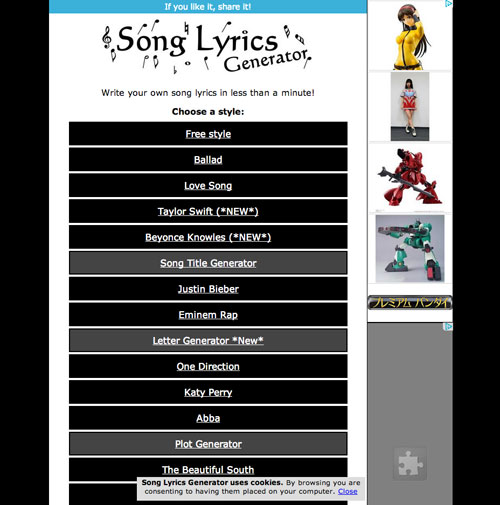 最後に英語の歌詞ジェネレーター「Song Lyrics Generator」を紹介します。