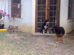 いつの間にか真横まで来ていたライオンに気付いて犬もビックリ。ライオンには犬を襲うつもりはなかったので最後は笑える映像となりましたが、子どものライオンにもやっぱりハンターとしての本能は宿っているんですね。