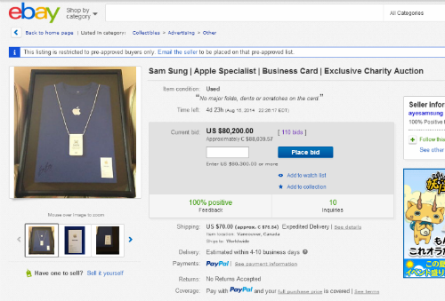 元Apple従業員「サム・スン」さんの名刺がオークションに→入札が8万ドル超え
