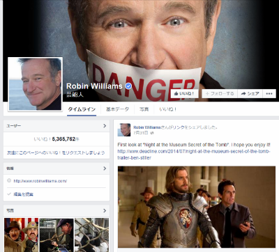 俳優のロビン・ウィリアムズさん亡くなる Facebookに多数の追悼メッセージ