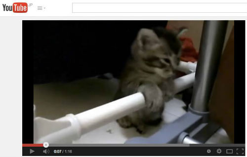 子猫はよく遊び、よく眠ります。この子猫ちゃんは遊び疲れてしまったのでしょうか。ラックのようなもののポールに前足をかけ、うつらうつらと後ろに倒れていき、前足がずり落ちそうになります。