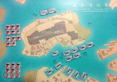 日本史の教科書にも載っている有名な真珠湾攻撃(1941年12月8日)。さすがに言葉として知っている日本人は多い。真珠湾にいた米海軍太平洋艦隊を「赤城」「加賀」「飛龍」「蒼龍」「翔鶴」「瑞鶴」の空母部隊で奇襲して、戦艦5隻撃沈・港内擱座(かくざ)とする大きな損害を与えた。