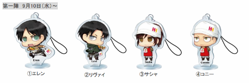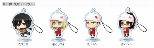 また「進撃の巨人弁当」を3つ購入してレシートをはがきに貼って送るか、レシート番号をWebで入力すると、抽選で50人にエレンの掃除シーンを再現したフィギュア(ほっかほっか亭オリジナルバージョン)が進撃の巨人展チケット1枚付きで当たる。外れた中から抽選で100人に、アクリルストラップ全8種付きオリジナルジオラマが当たる。