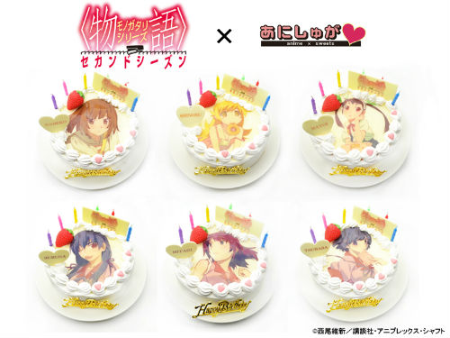キャラクターケーキ専門店「あにしゅが」が8月16日、「<物語>シリーズ セカンドシーズン」のキャラクターイラスト入りケーキを発売した。同日の「花物語」放送を記念した商品だ。
