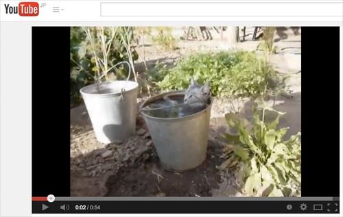 開放的な気分を味わえる露天風呂が好きな人も多いですよね。しかし、それは人間だけでなく猫ちゃんもそうなのかもしれません。こちらのネコちゃんは、外でバケツ風呂を楽しんでいるようです。