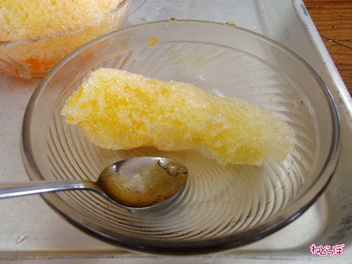 少し大きくなってきたところで、第1弾目のシロップ投入。下の方までシロップたっぷり。シロップをかけたら再び氷を盛っていく。
