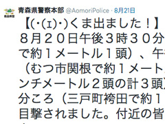 うっかり癒やされた:「(・(ェ)・)くま出ました!」 青森県警Twitterの注意喚起が緊迫感ないと話題に