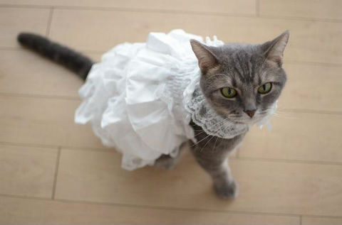 この発想はなかった!? ネコにウェディングドレスを着せた写真が話題になっています。