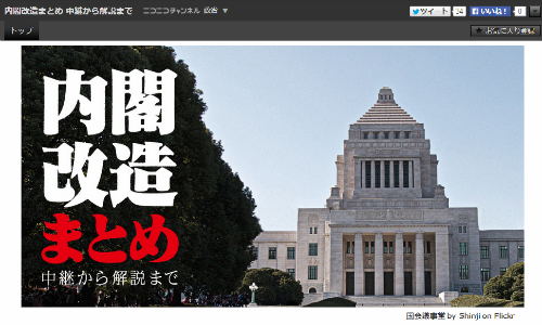 9月3日に行われる内閣改造について、Twitter、ドワンゴ、ヤフー、LINEが各社のサービスを生かした生放送や記事配信、告知などを行う協力企画を実施する。