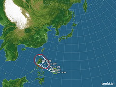 12日15時、フィリピンの東で、熱帯低気圧が台風15号になりました。中心気圧は 1000ヘクトパスカル、中心付近の最大風速は 毎秒18メートル、1時間に25キロの速さで、西へ進んでいます。台風は、この後も、西よりに進む見込みで、今のところ、日本への直接の影響はなさそうです。