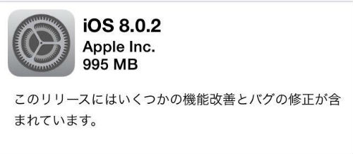 AppleがiOSのアップデート「iOS 8.0.2」を配信開始した。